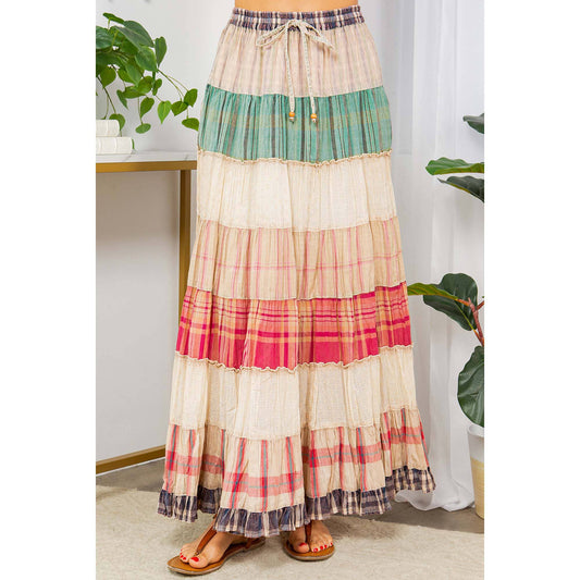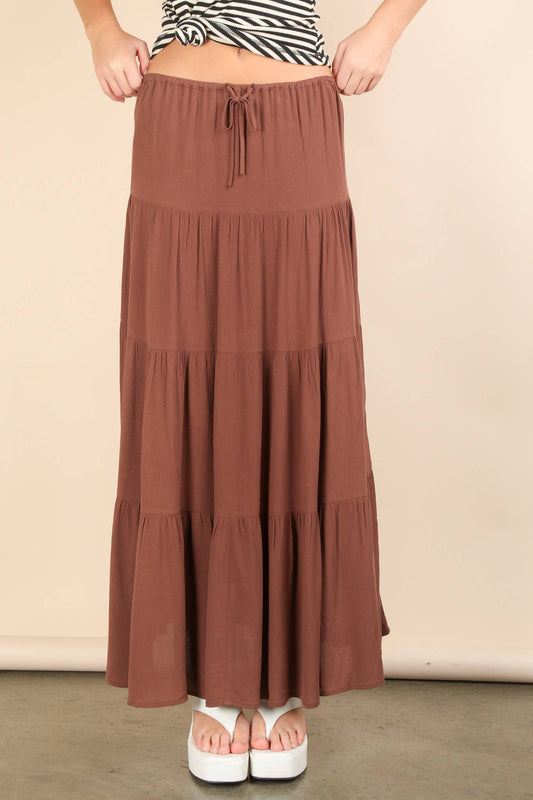 Gia's Chocolate Tiered Layers Woven Midi Skirt