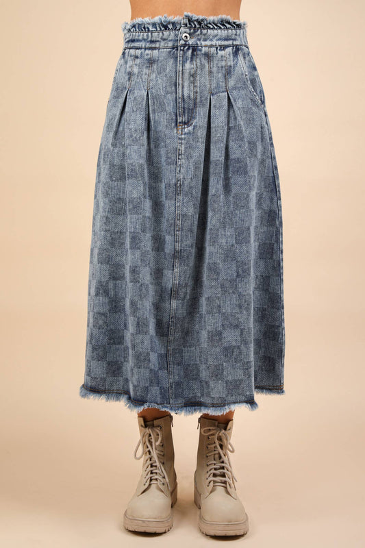 Rocco's Washed Checkered Denim Skirt