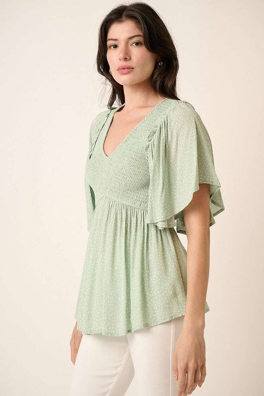 Dotty Smocked V-Neck Blouse