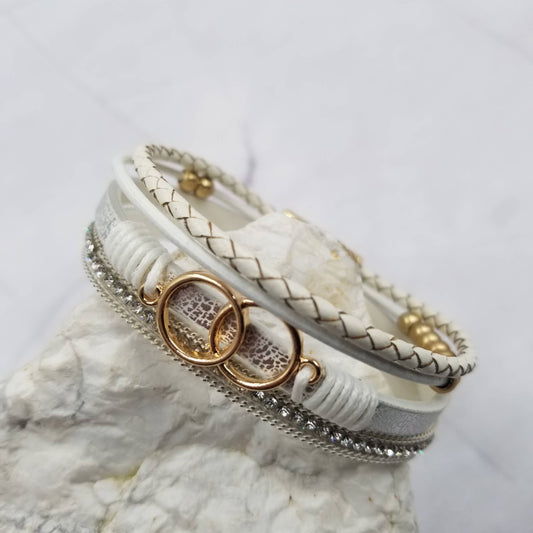 Crystal Leather Double Circle Bracelet Magnetic Snap