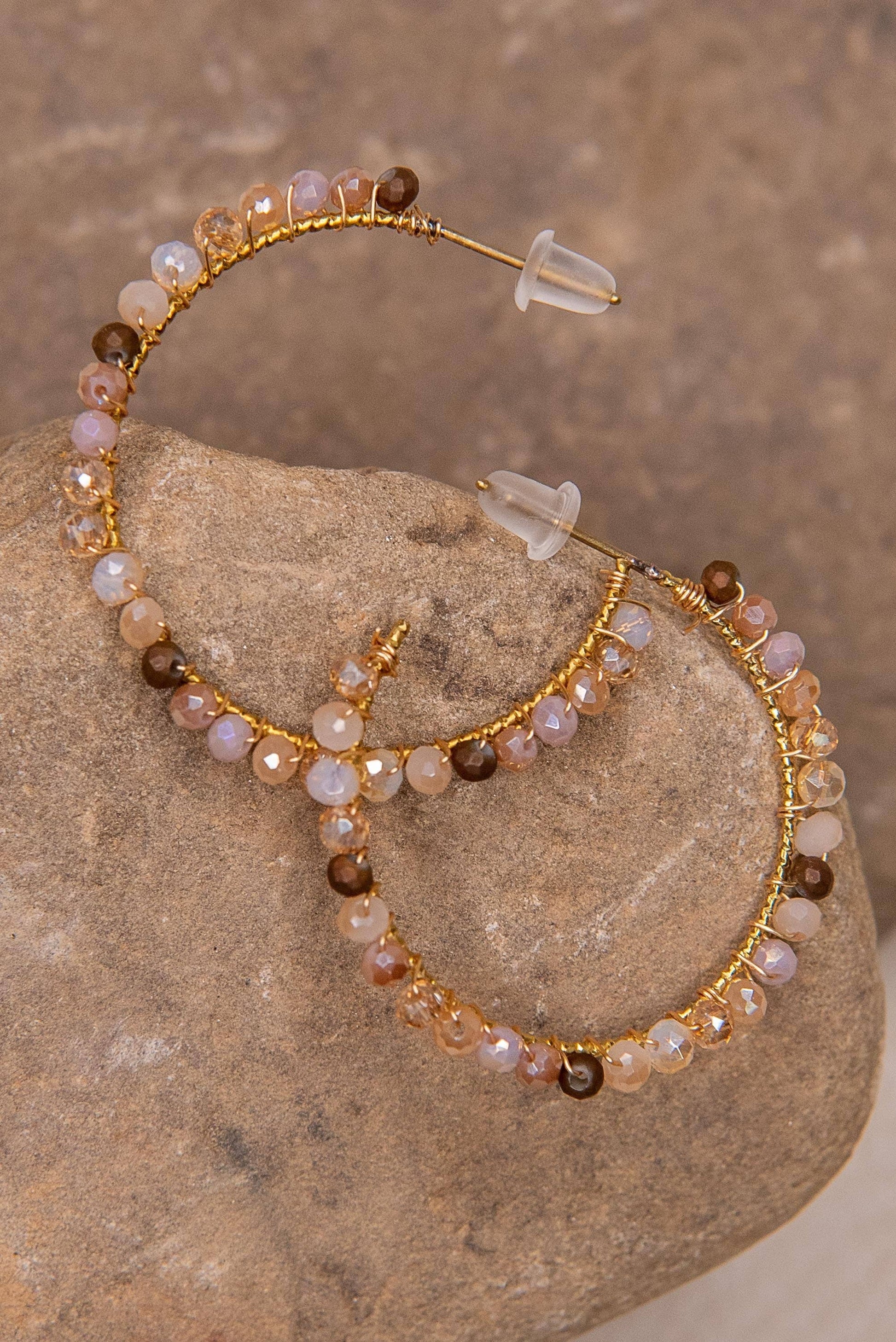 Beaded hoops with rubber earring backs.